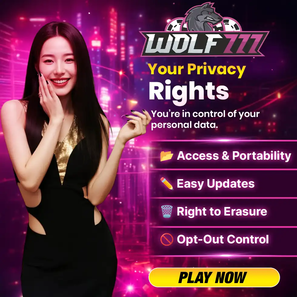 Questions about how Wolf777 handles your data? Contact  privacy@wolf777online.com   or use the  live chat   on  wolf777.com . We respond to privacy inquiries within 48 hours.